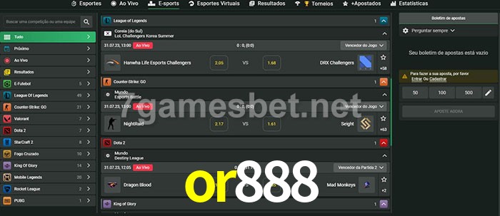 A aposta or888 oferece aos jogadores a experiência mais conveniente de apostas em eSports!